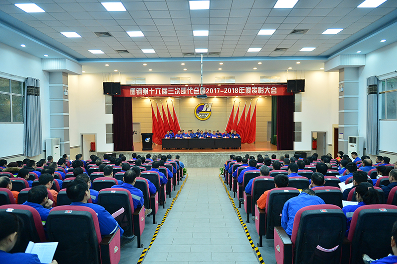 副總經(jīng)理宋光鑫宣讀表彰決定,對(duì)2017—2018年六個(gè)先進(jìn)黨委、7個(gè)先進(jìn)單位、20名衡鋼英模、35名優(yōu)秀共產(chǎn)黨員、102名先進(jìn)生產(chǎn)(工作)者進(jìn)行表彰。公司領(lǐng)導(dǎo)現(xiàn)場(chǎng)為先進(jìn)集體、衡鋼英模頒發(fā)獎(jiǎng)牌和證書。副總經(jīng)理程斯祥對(duì)職工代表所提出的七個(gè)共性意見和建議了進(jìn)行了答復(fù)。