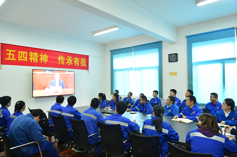 儀式結(jié)束后,公司領(lǐng)導(dǎo)左少懷、宋光鑫帶領(lǐng)各二級(jí)團(tuán)委團(tuán)干在會(huì)議室學(xué)習(xí)觀看了習(xí)近平總書(shū)記五四講話。