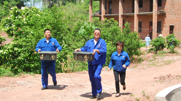 公司黨委副書記、紀(jì)委書記、工會主席殷世清率工會、89分廠、180分廠、340分廠、720分廠、管加工分廠、物流中心、檢測中心等部門負(fù)責(zé)人,到衡南縣栗江鎮(zhèn)六合村精準(zhǔn)扶貧,給該村貧困戶送去價值2000多元的雞苗和鴨苗。 當(dāng)天,共給7戶結(jié)對的貧困戶送去已經(jīng)培養(yǎng)了10多天的母小雞和小鴨350只,每到一戶,...